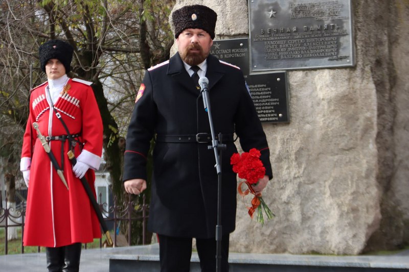 К участникам обратился заместитель главы района, атаман Темрюкского районного казачьего общества Виталий Хандошка и Александр Беляев, ветеран боевых действий в Республике Афганистан, подполковник в отставке, член правления Российского союза ветеранов Афганистана и специальных военных операций.