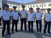 Казаки Темрюкского районного казачьего общества приняли участие в охране правопорядка во время праздничных школьных линеек, посвященных Дню знаний