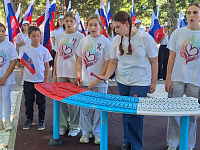 Дети приняли участие в мастер-классе «Флаг песком». Ведущие познакомили ребят с историей создания российского флага, значением его цветов и ситуациями, в которых поднимается государственный триколор
