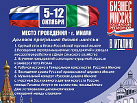С 5 по 12 октября 2025 года пройдет агропромышленная бизнес-миссия регионов России в Италию