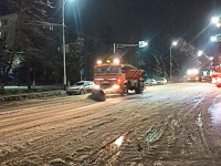 Специалисты муниципальных служб и коммунальные бригады работают в две смены - обрабатывают дороги, тротуары и общественные территории, чтобы обеспечить безопасность передвижения