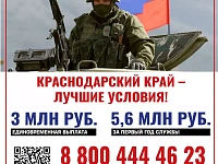 В Краснодарском крае действуют лучшие условия при подписании контракта на военную службу с Минобороны России