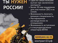 В Краснодарском крае действуют лучшие условия при подписании контракта на военную службу с Минобороны России