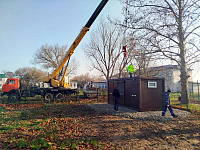 В Старотитаровском сельском поселения установили туалетный модуль на центральном стадионе, выполнили кронирование веток вдоль автомобильных дорог и провели санитарную уборку общественных территорий