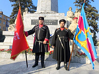 Делегация Темрюкского муниципального отделения Союза казачьей молодежи Кубани приняла участие в передаче копий Знамени Победы