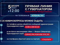 Губернатор Краснодарского края ответит на вопросы жителей в прямом эфире телеканала «Кубань 24»