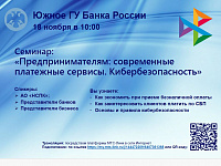 18 ноября организовано проведение вебинара на тему «Предпринимателям: современные платежные сервисы. Кибербезопасность»