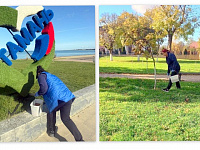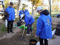 Можжевельники, сосны и клены посадили старшеклассники во дворе таманской школы №9