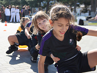 Здесь развернулись тематические спортивные площадки, где каждый гость мог не только поболеть за юных спортсменов, но и проверить свои силы