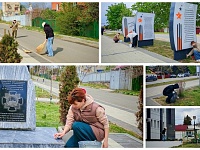 Участники убрали мусор, очистили стелы, привели в порядок клумбы и дорожки. Особое внимание уделили плитам с именами героев - их тщательно очистили
