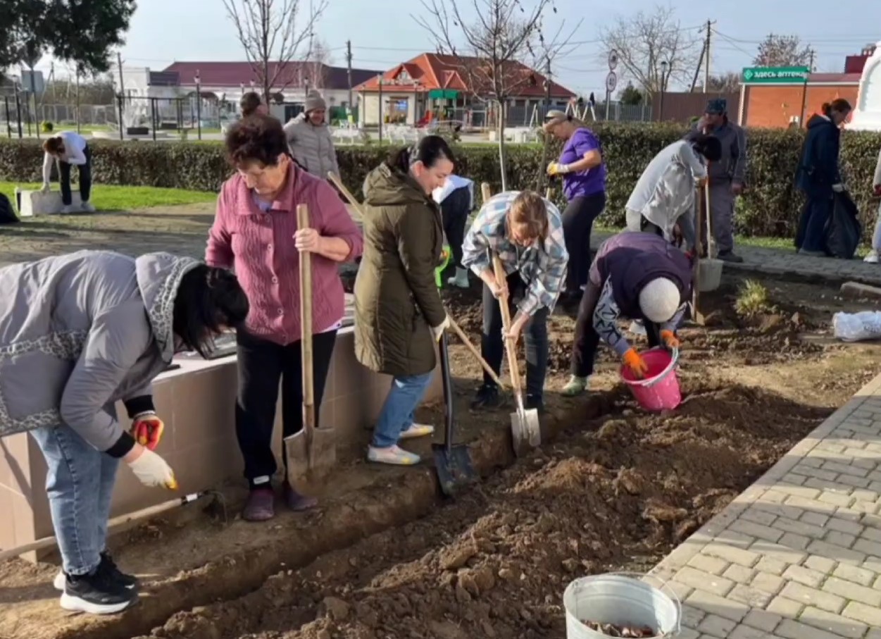 На прошлой неделе в рамках благоустройства территории поселения выполнены работы по обрезке аварийно-опасных деревьев. Сотрудники администрации и муниципального учреждения «Ахтанизовский КСЦ» высадили тюльпаны в парке и сквере «80-летия Победы» на ул. Красной в станице Ахтанизовской.