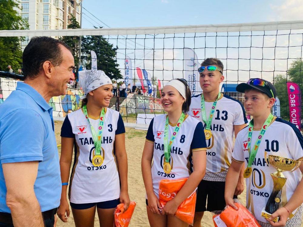 Приятным подарком для всех стало участие в церемонии награждения губернатора Вениамина Кондратьева, который был удивлён, что чемпионами стала команда, приехавшая из маленькой приморской станицы. Губернатор расспросил таманских волейболистов про планы на будущее, куда они будут поступать и, конечно, поздравил с блестящей победой.