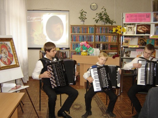 - В межпоселенческой библиотеке состоялось праздничное мероприятие «Дающая жизнь», посвященное Дню матери. Здесь чествовали Галину Павловну Шапову, Галину Алексеевну Манченко, Алевтину Ивановну Петухову. Трагична судьба этих женщин – их сыновья погибли, выполняя служебный долг. А для матери, пожалуй, самое страшное - пережить своих детей. Поддержать и поздравить с праздником этих женщин, а в их лице и всех матерей, пришли председатель районного совета ветеранов Виктор Уженцев, председатель городского комитета ветеранов войны и военной службы, капитан 2-го ранга Геннадий Шумилин, председатель комитета солдатских матерей Нина Полищук и другие. Заместитель главы города Евгения Лавушкина поздравила их с праздником, вручила памятные подарки и букеты цветов, - рассказала ведущий методист межпоселенческой библиотеки Элина Соколова.