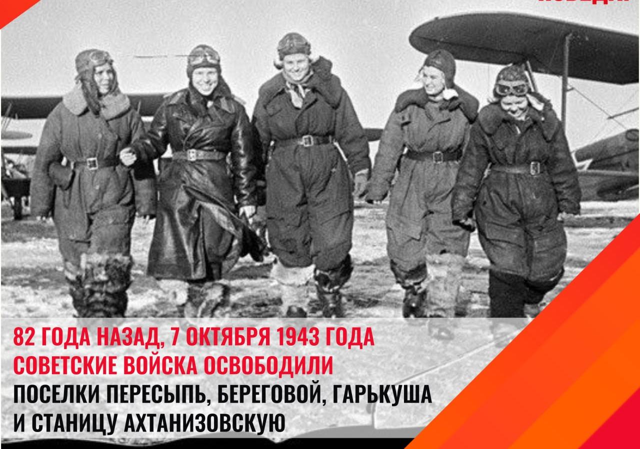 7 октября 1943 года вошло в историю Темрюкского района как день освобождения от немецко-фашистской оккупации поселка Пересыпь, станицы Ахтанизовской, а также поселков Береговой и Гаркуша.