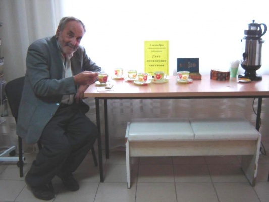 В этот праздничный день читатели могли не только взять понравившуюся книгу, но и почаевничать, для чего был накрыт стол с традиционным самоваром и конфетами. Наслаждаясь любимым чаем, можно было побеседовать о наболевшем, зная, что тебя обязательно выслушают, а также посмотреть поздравительный ролик в формате электронной презентации, подготовленный сотрудниками библиотеки.