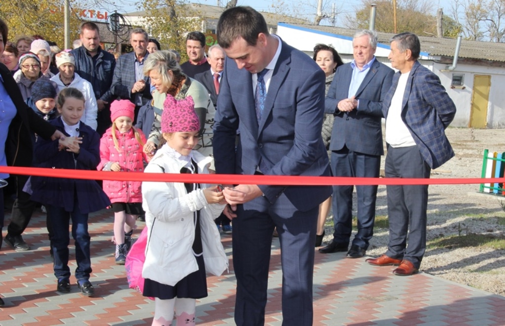 Традиционную красную ленточку помогли перерезать юные жители станицы.
