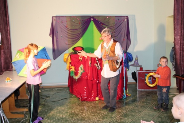 Ребята с интересом смотрели кукольное представление, восторгались, как ловко может показывать фокусы Игорь Бордюченко, пытались овладеть этим и учились управлять куклами. Они смеялись, и вместе с ними на время отключились от проблем и переживаний их мамы.