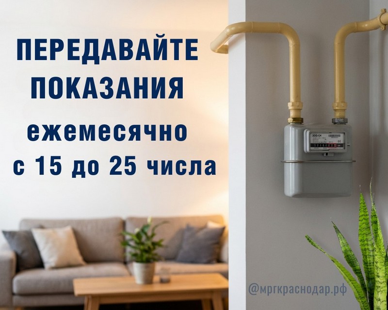 Газпром межрегионгаз Краснодар напоминает, передавать показания счётчика необходимо с 15 по 25 число каждого месяца.