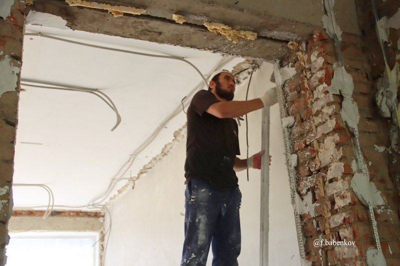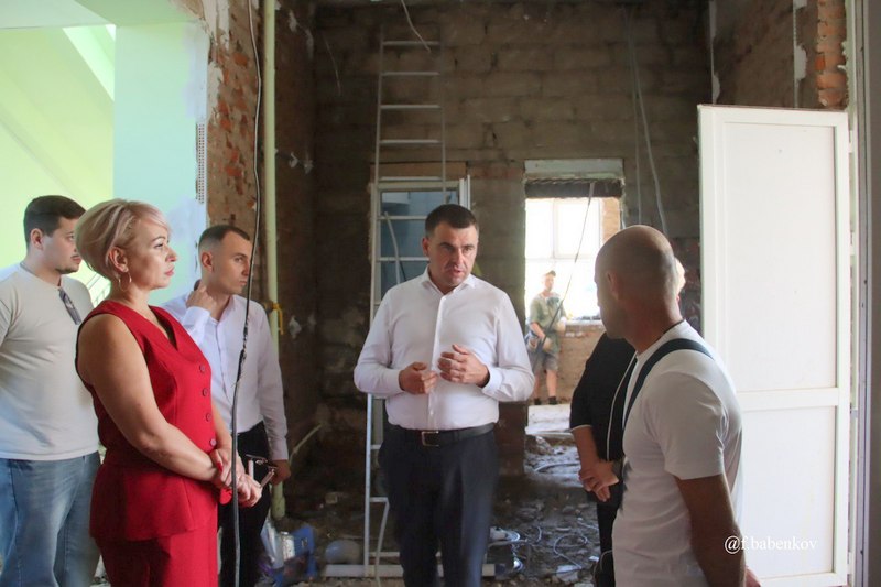 Фёдор Бабенков совместно с подрядчиком осмотрел здание и территорию учебного заведения. Работы ведутся согласно утвержденному графику. Демонтаж на всех этажах завершен, в настоящее время выполняются оштукатуривание стен, кладка перегородок, монтаж инженерных сетей и установка системы вентилируемого фасада.