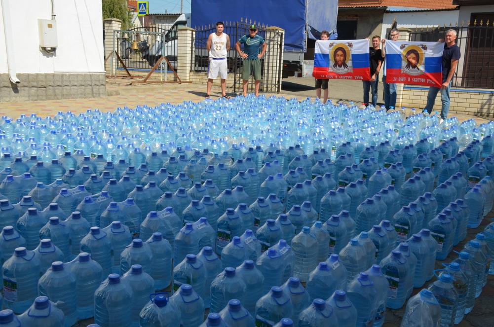 Нашим воинам было отправлено 800 пятилитровых бутылок воды — 4 тонны. Также ребятам переданы молитвословы, шевроны «Спаси и сохрани», знамена «За веру и святую Русь», молитвы о победе русского воинства, нательные крестики.