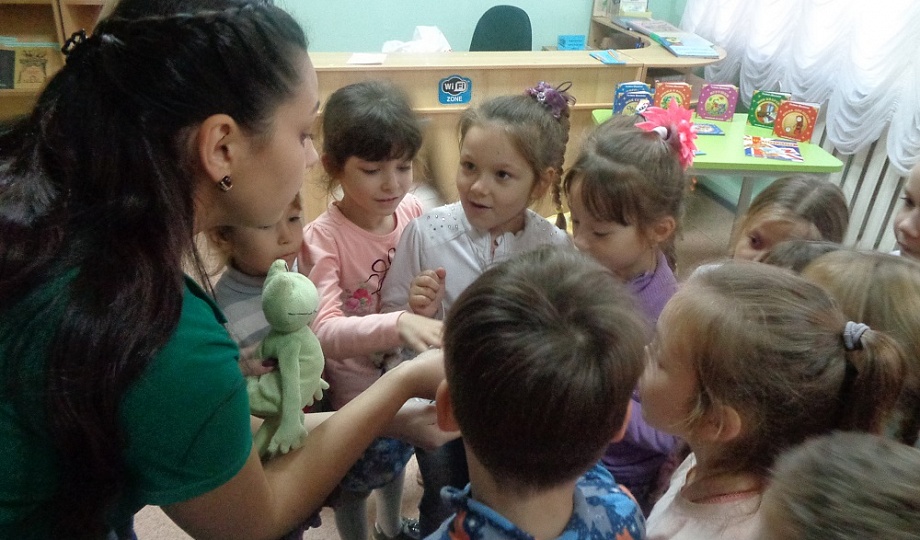 Дети не учатся, они узнают и запоминают то, что им было интересно узнать ушами, глазами, руками и ногами. Поэтому для проведения игровой программы «Играм по-английски» библиотека пригласила детскую игровую студию «Крошки-ладошки».