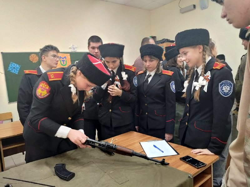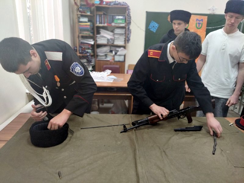 Программа квеста включала две основные части: интеллектуальную, где школьники отвечали на вопросы по истории казачества и Великой Отечественной войны, и практическую, с отработкой навыков по разборке-сборке автомата Калашникова и снаряжении магазина.