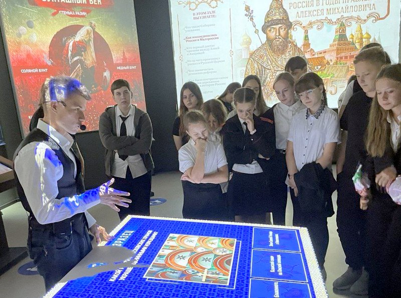 Музей представляет собой современную экспозицию с сенсорными экранами, мультимедийными проекциями и 3D‑реконструкциями, которые позволяют наглядно и увлекательно познакомиться с ключевыми этапами российской истории. Ученики прошли путь от Древней Руси до современного этапа развития страны, ознакомились с основными историческими событиями и личностями.