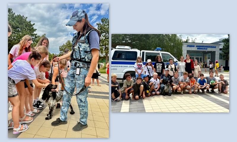 На встречу приехали инспектор-кинолог ЦКС ОМВД России по Темрюкскому району, лейтенант полиции Алена Лепехина, и ее служебная собака Еврик. Кинолог рассказала ребятам о том, как учат служебных собак новым командам, и ответила на все их вопросы.