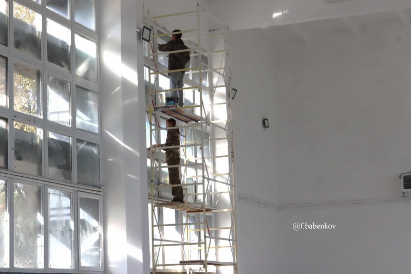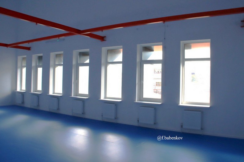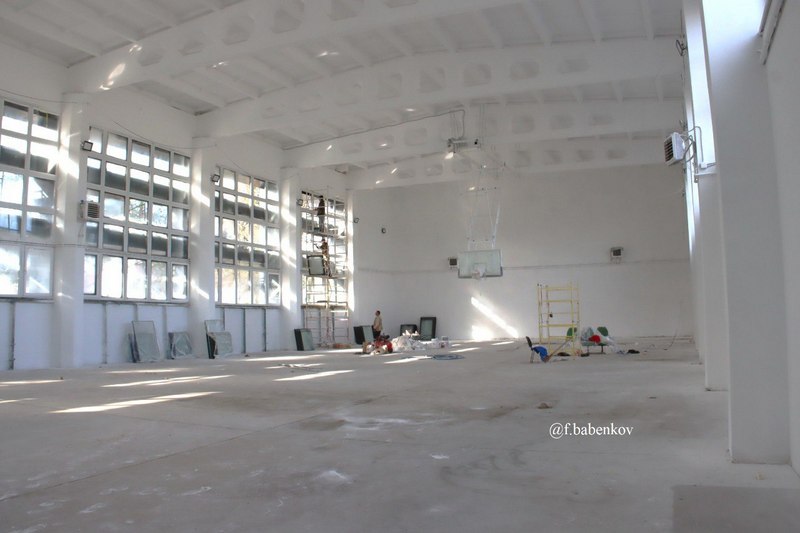 На объекте уже завершены основные строительные и отделочные работы, идёт замена остекления в спортивном зале. В ближайшее время подрядчик начнёт монтаж вентиляции и потолочных конструкций в кабинетах и раздевалках. Затем запланирована укладка специального паркета в зале.
