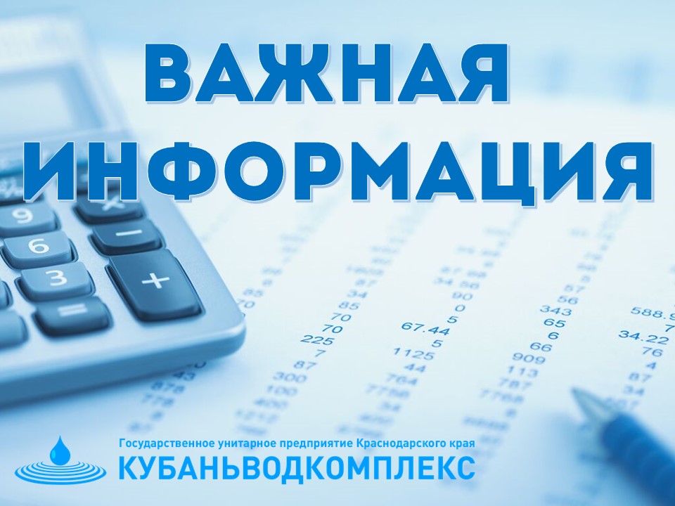 «Кубаньводкомплекс» призывает всех потребителей быть ответственными и вовремя оплачивать коммунальные услуги.