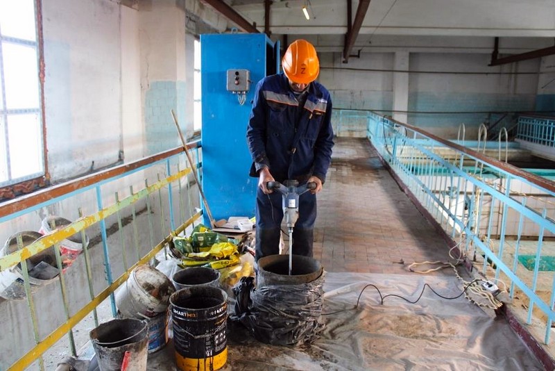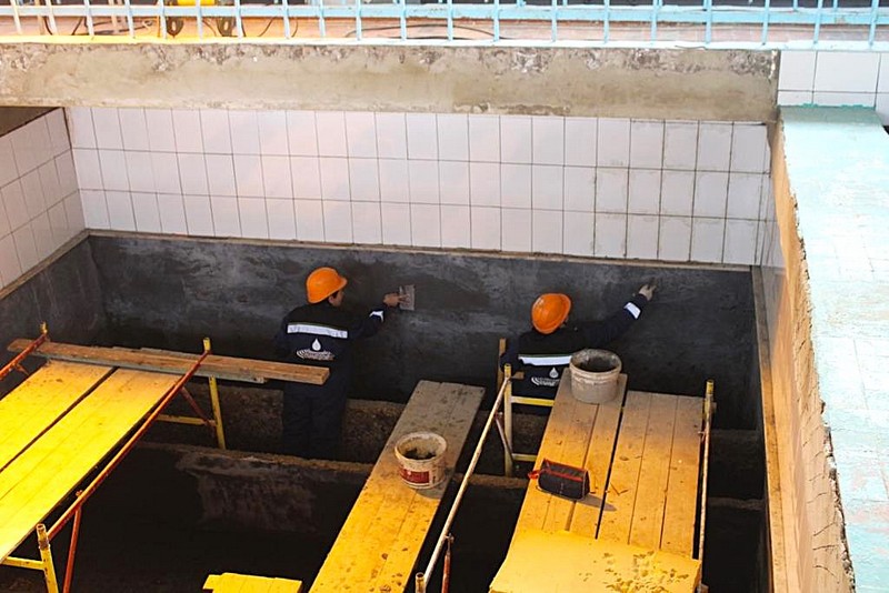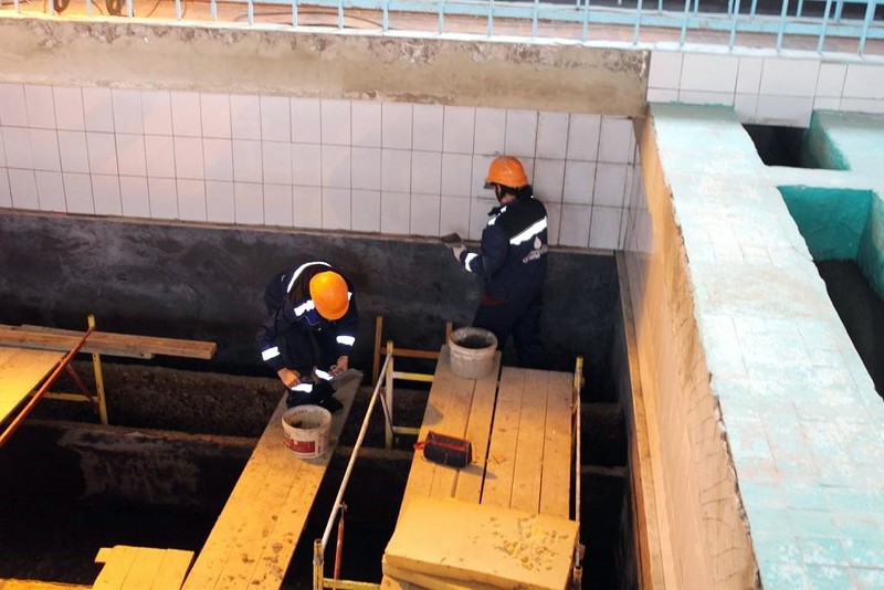 Всего, на очистных сооружениях восемь фильтров, семь из которых отремонтированы по производственной программе предприятия за последние три года. В настоящее время, ремонтные работы завершены на последнем – восьмом. Проводится комплекс мероприятий по созданию защитного барьера чаши резервуара фильтра и предотвращению образования трещин и утечки воды: удалено старое бетонное покрытие, ведутся работы по гидроизоляции и восстановлению защитного слоя бетона, замене керамической плитки. Также будет осуществлен ремонт кармана фильтра и ремонт бетонных лотков.