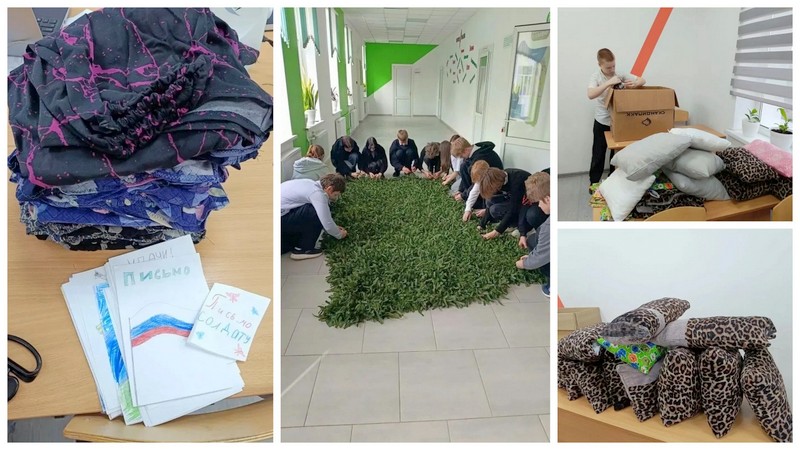 За несколько дней каникул школьники выполнили большой объем работы. Юные добровольцы занимались плетением маскировочных сетей, шили подушки, а также писали тёплые письма и слова поддержки участникам специальной военной операции.