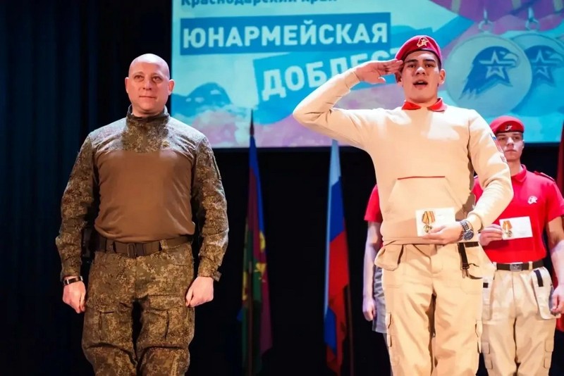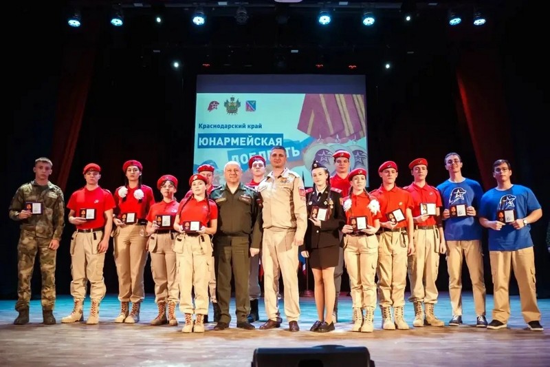 В районном Доме культуры города Тимашевска состоялась церемония вручения знаков отличия «Юнармейская доблесть» лучшим юнармейцам Краснодарского края и участникам военного Парада в Новороссийске в 2025 году.