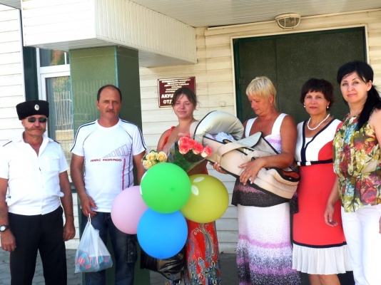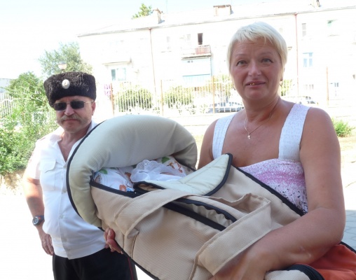 У роддома Марину с цветами и подарками от главы района Ивана Василевского встречали главные специалисты районного управления по вопросам семьи и детства Светлана Сафарова и Вера Крючкова, начальник штаба городского казачьего общества Александр Скрябин.