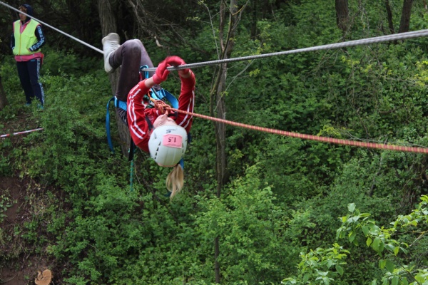 В день приезда команды проходили квалификацию. Для старшей возрастной группы была поставлена задача за 20 минут натянуть низ у параллельных перил, организовать сопровождение, сдернуть и смаркировать веревки. А туристам средней возрастной группы - пройти навесную переправу, организовать сопровождение и осуществить спуск на восьмерке.