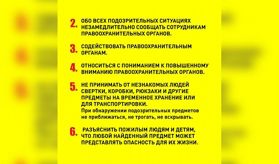 - если вы обнаружили подозрительный предмет ни в коем случае не трогайте его и сообщите сотрудникам правоохранительных органов;