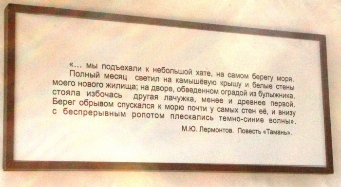 В сентябре 1837 года по дороге на Кавказ Михаил Лермонтов остановился в Тамани. Позже своим приключениям в этом городе он посвятил рисунок и целую главу в романе «Герой нашего времени», подлинник рукописи которою не найден до сих пор. Причем, поэту Тамань не понравилась, - «Тамань — самый скверный городишко из всех приморских городов России. Я там чуть-чуть не умер с голода, да еще вдобавок меня хотели утопить». - Как бы удивился и поразился Михаил Юрьевич, увидев Тамань сегодня.