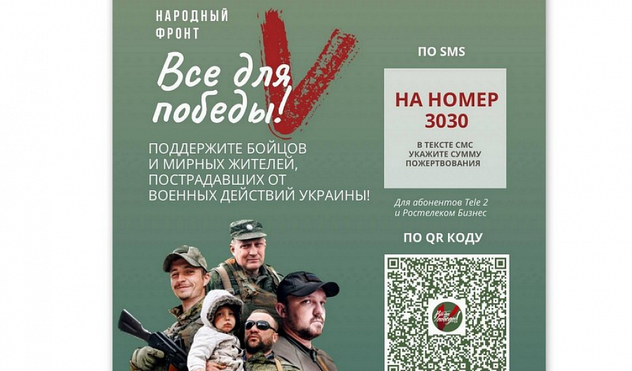 Акция под девизом «Всё для победы!» проводится Общероссийским Народным фронтом в поддержку бойцов СВО и мирных жителей новых и приграничных регионов.