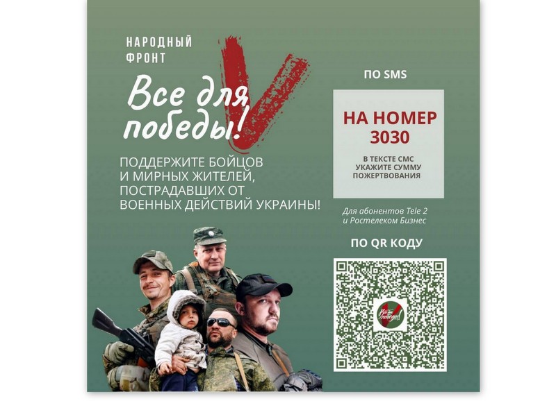 Акция под девизом «Всё для победы!» проводится Общероссийским Народным фронтом в поддержку бойцов СВО и мирных жителей новых и приграничных регионов.