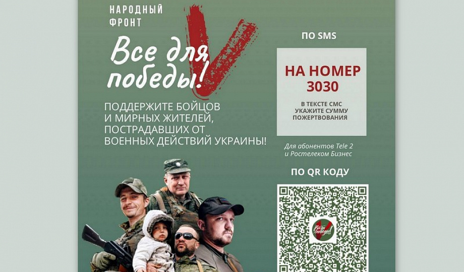 Акция под девизом «Всё для победы!» проводится Общероссийским Народным фронтом в поддержку бойцов СВО и мирных жителей новых и приграничных регионов.