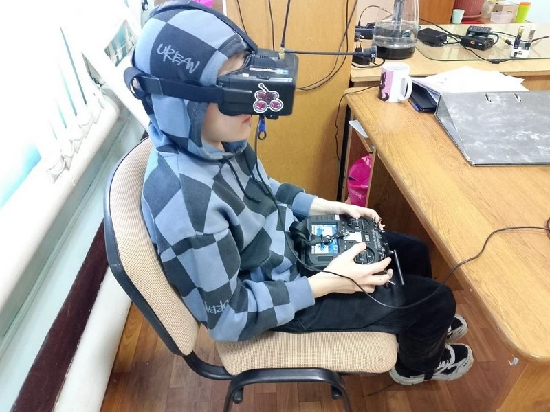 Затем учащиеся отработали навыки управления на техническом симуляторе. Перейдя от теории к практике, воспитанники центра выполнили учебные полёты на FPV-дроне. По словам педагогов, ощущения — как у настоящих операторов БПЛА.