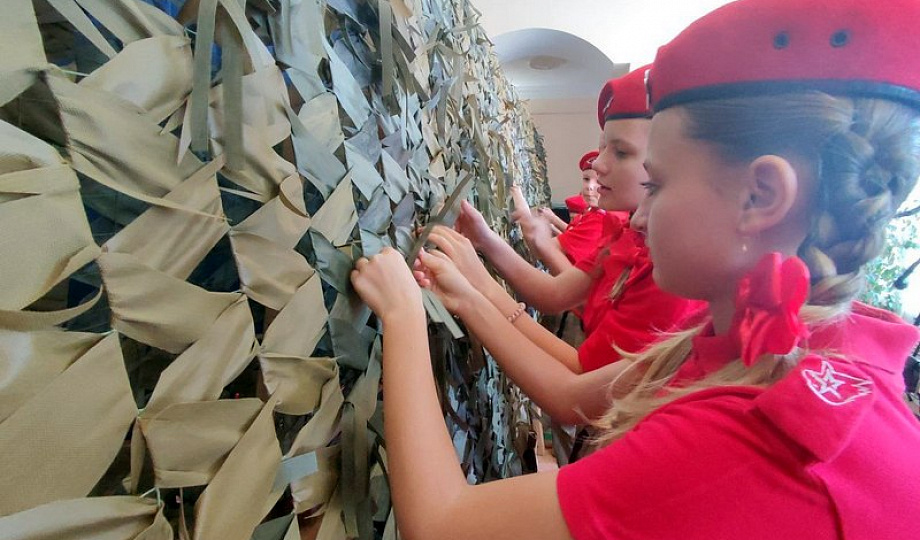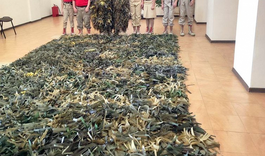 Юнармейцы плетут маскировочные сети — крайне необходимый элемент экипировки.