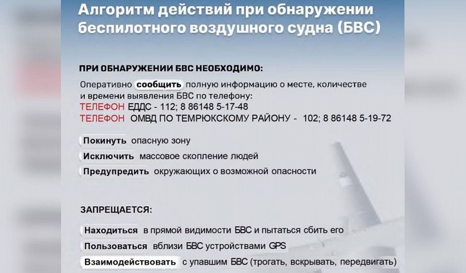 Памятка населению в случае выявления нахождения беспилотных воздушных судов