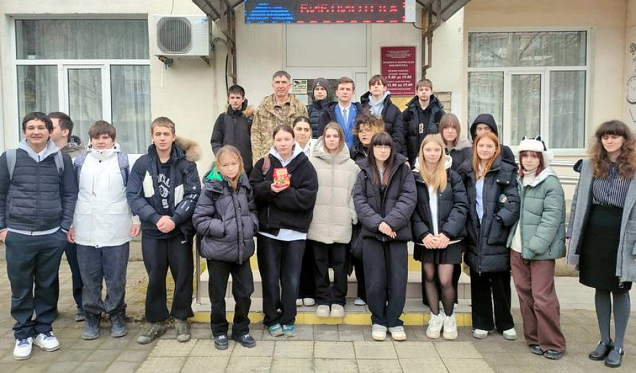 В начале мероприятия заведующая отделом обслуживания Наталья Шерстнева рассказала о важности профессии военного и о том, какими качествами должен обладать защитник Родины. Гостями мероприятия стали житель Темрюкского района - участник СВО Сергей с позывным «Волна», и руководитель местного отделения «Молодая гвардия Единой России» Егор Сытник.