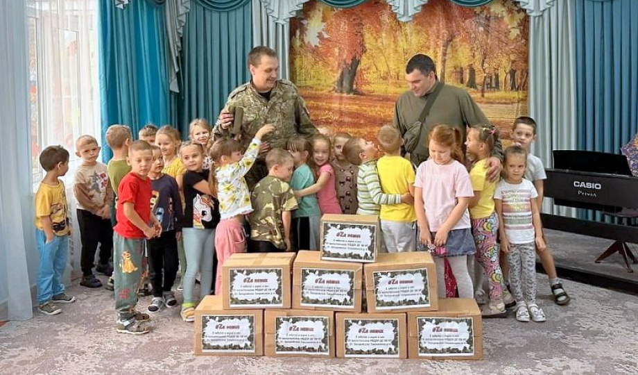 Малыши подарили защитникам рисунки с изображениями мира и дружбы, а родители передали собранную гуманитарную помощь.