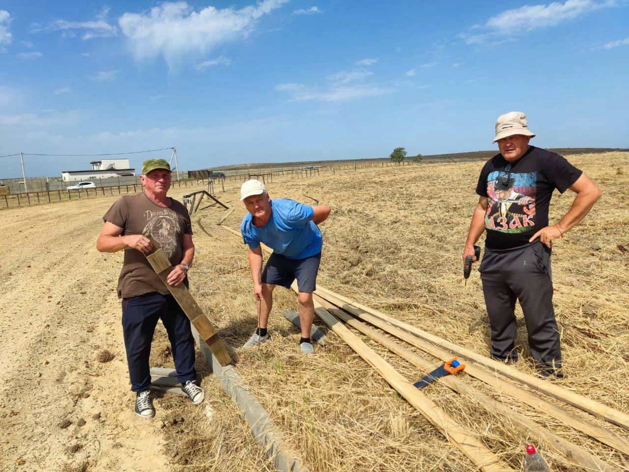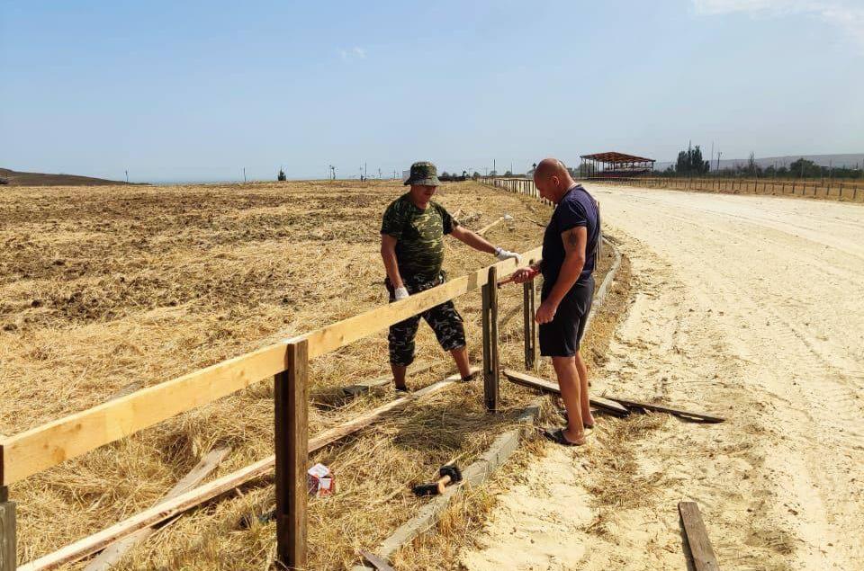 Казаки станицы Тамань и района оказали организаторам конноспортивного представления помощь в обустройстве изгороди - барьера нужного при проведении скачек.