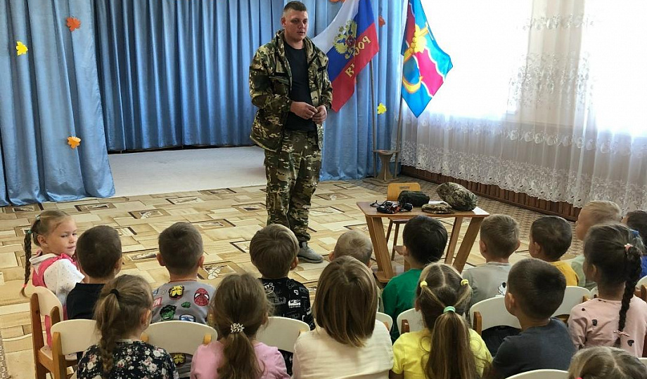 Акция состоялась в детском саду № 47 поселка Кучугуры. В гости к воспитанникам приехал участник СВО Артём Богуцкий. Ребята с замиранием сердца готовились к встрече, ведь для них слово «герой» обрело реальные черты.