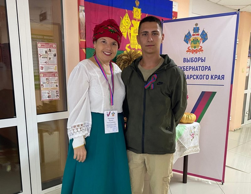 На городском избирательном участке № 49‑15 день начался с исполнения гимнов России и Краснодарского края. Председатель участковой комиссии Ирина Жирнова поздравила присутствующих с двойным праздником и напомнила, что Кубань прошла долгий путь: стала житницей страны благодаря труду аграриев, превратилась в курортную жемчужину у моря и известна своим гостеприимством — здесь в мире и согласии проживают представители более чем 100 национальностей.