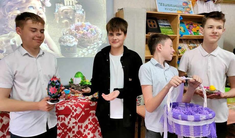 Вниманию ребят была представлена книжно-иллюстративная выставка «Пасхальный перезвон», которую подготовили работники отдела обслуживания.