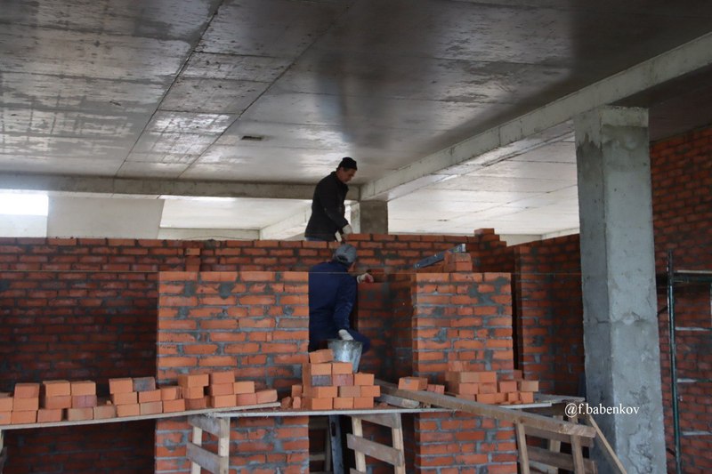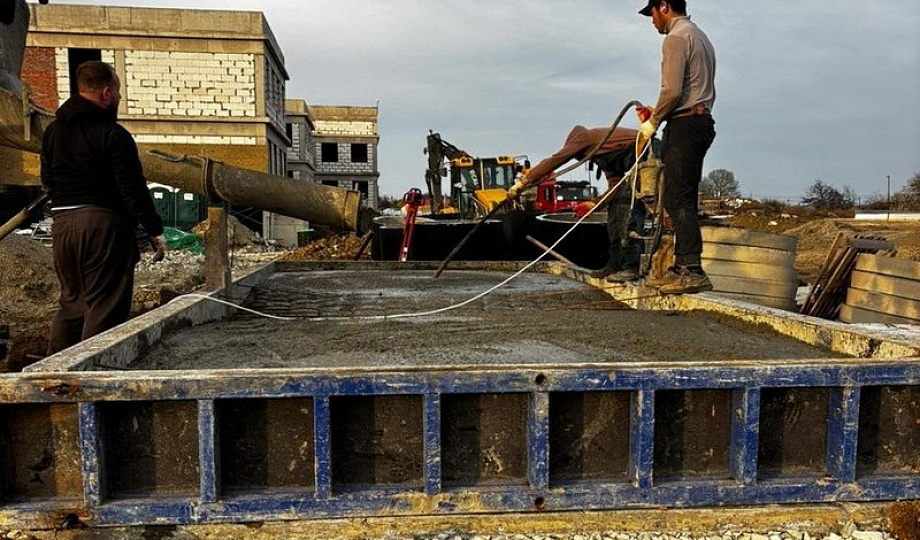 Основные бетонные работы на объекте завершены, ведётся кладка перегородок, планировка грунта и бетонирование входных групп.